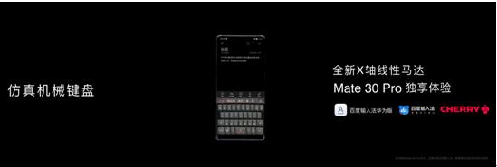 而再说回游戏领域,试问哪位资深游戏迷没有中过机械键盘的“毒”?机械键盘各种轴的敲击感、悦耳的敲击声、炫酷的外观都是吸引玩家的亮点。而百度输入法与全球专业的键盘制造厂商Cherry合作打造仿真键盘,让玩家不用花上千元就能体验宛如机械键盘的手感。仿真键盘在华为Mate30 pro上首度应用便“圈粉”无数,近期,华为还官宣了旗下部分搭载z轴马达的适配,具体型号包含Mate30、Mate20及pro、P30及P30 pro。