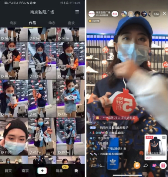 除了对主播的严格筛选和培训,价格优势和抖音平台的品牌背书也是直播成功的重要因素。弘阳广场在,进行抖音直播时跳转电商平台产生的销量就冲到了8万多元,相关工作人员表示:“比如阿迪达斯,我们做了经典款59折的活动,这在很多时候是线下买不到的,而且本次直播售卖还包邮。”