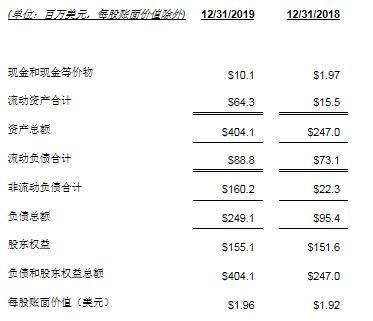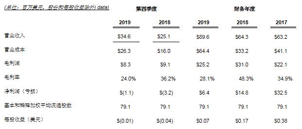 2019年第四季度,归属于公司所有者的净亏损为100万美元,即基本每股亏损、稀释每股亏损为0.01美元,去年同期归属于公司所有者的净亏损为300万美元,即基本每股亏损、稀释每股亏损0.04美元。
