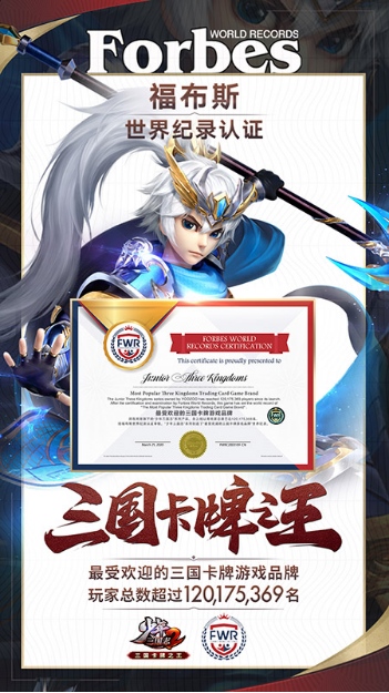 最 新 一期的福布斯世界纪录认证公布,游族网络自研并发行的《少年三国志》系列手游创造了“,的三国卡牌游戏品牌”世界纪录。