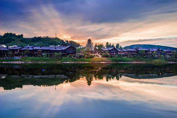 丹寨万达小镇,便是此次万达丹寨扶贫项目的核心。 小镇坐落于丹寨县东湖湖畔,以苗族传统特色建筑为基础,以丹寨历史文化传承与民族风情为核心,依山傍水、交辉相映。 小镇占地面积400亩,建筑面积约5万平方米,全长1.5公里,是一座集“吃,住,行,游,购,娱”为一体的休闲,度假,历史,养生文旅小镇。 小镇将丹寨7个,非物质文化遗产项目,以及17个省级非物质文化遗产全部引入,包括石桥古法造纸,苗族锦鸡舞,苗族蜡染,芒筒芦笙祭祀乐等。 此外,三大斗艺场馆(斗牛、斗鸡、斗鸟)和三座非遗小院(造纸小院,蜡染小院,鸟笼主题民宿小院)等特色民族文化产业均已“落户”。