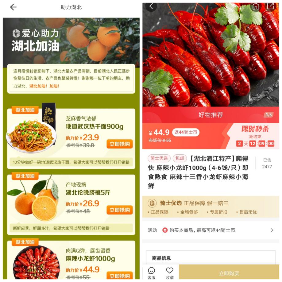 据悉,目前全球购骑士特权已开启“助力湖北”专区,平台在售的湖北特产有潜江小龙虾、武汉热干面、宜昌小土豆、楼兰脆灰枣、洪湖莲藕、鸭脖、甜橙等数十种。骑士特权为湖北商家提供产品销售平台,加上超千万,流量支持,促进产品销量提升,帮助湖北商家快速“回血”。