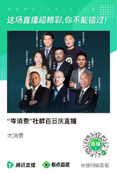 岑消费社群519看点直播百日大庆,特邀分众传媒董事长江南春、周黑鸭董事长周富裕、溜溜梅董事长杨帆、奈雪的茶董事长彭心、云集董事长肖尚略、弘毅资本MD兼百福控股CEO王小龙、钟薛高董事长林盛,为大家带来创业者成功经验分享。据了解,本次直播主要以看点直播连麦的形式,超100万元大礼直播现场免费送。