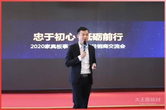 随后,大王椰家具板事业部负责人黎黎先生带来《忠于初心·砥砺前行》主题演讲,饱含价值与希冀的发言让在场的经销商们感受到满满的正能量。