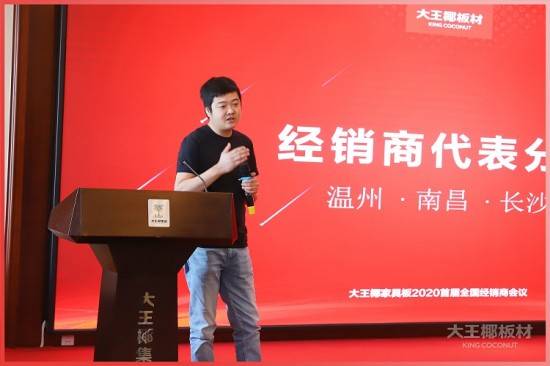 江西南昌经销商王松先生作为一名85后,在通货领域有过2亿年销售业绩的优秀经营经验,为大家分享了所在区域经营的套餐式产品模式,对于经营大王椰家具板事业,他非常开心,大王椰品牌的赋能结合他自身的经验,将会支撑他的事业更上一层楼。