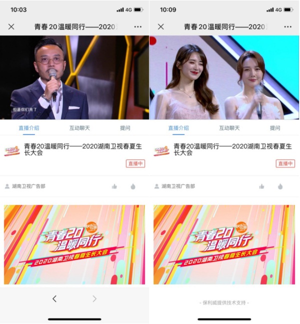“媒体顶流”湖南卫视发起了疫情之后的,云上直播招商会——“2020年春夏生长大会”,并宣布启动“10年来品牌营销,创新”的“大直播计划”。借助保利威直播,湖南卫视开启线上同步直播,让客户和观众能够无缝沉入场景。