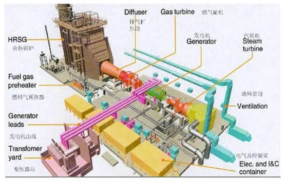 据了解,该电厂拥有先进的设备与科学的流程,其运作方式是通过管道将天然气送入电厂的调压站,目前管长约18公里,再经过净化、调压、加热后进入燃气轮机。其工作的原理与过程是利用压气机吸入空气,经过压缩后送入燃烧室,与燃料混合后燃烧成为高温燃气,再进入燃机透平中膨胀作功发电。将燃气轮机排气引入余热锅炉(HRSG),通过热交换产生过热蒸汽。过热蒸汽送入驱动汽轮机,然后带动发电机发电,这便是联合循环发电。