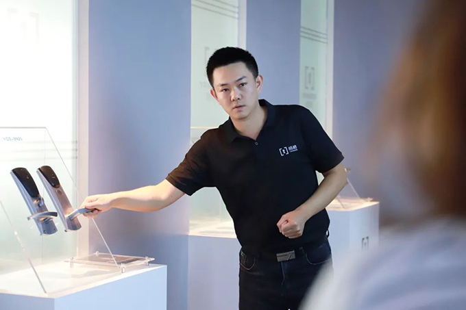 分享会议结束后,杨格智控CEO周理新带领各企业领导参观了杨格展厅,大家仔细聆听了讲解员对于杨格产品更新迭代历程。在讲解过程中,大家对杨格智能锁产生浓厚的兴趣,都忍不住拍照留念。