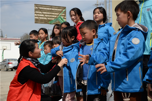 (为了赶在春节前送出第一批春暖物资,2021年2月6日下午,“春暖行动”志愿者们在活动正式启动之前,已为广西百色市那坡县的受助儿童穿上防风防寒的新衣服。图片来源:腾讯公益)