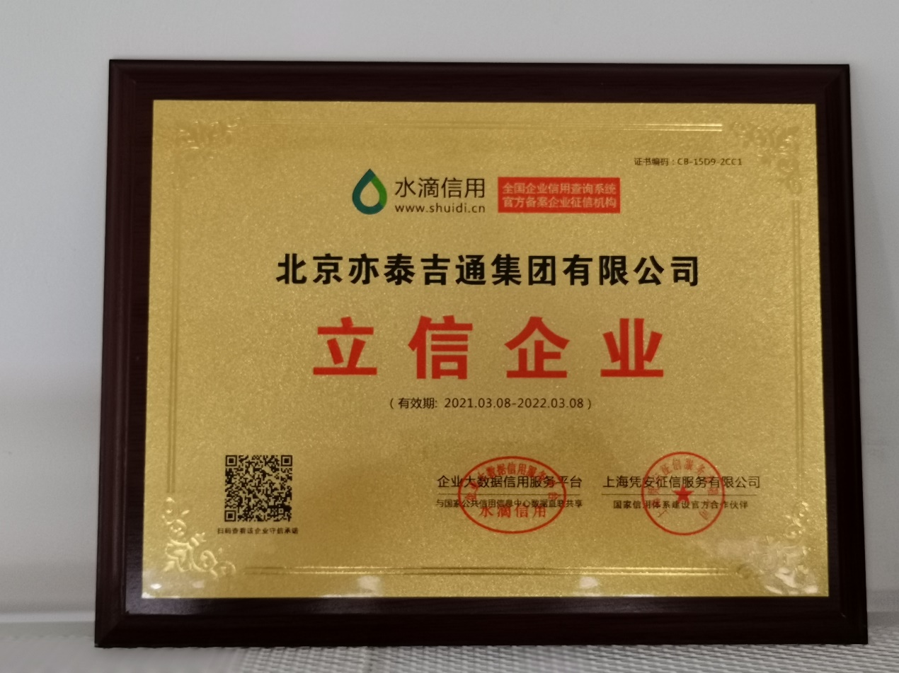 据记者了解,经过水滴信用的严格的资质审核、评估,北京亦泰吉通集团等数百家企业被水滴信用评为:“立信企业”并授铜牌和证书。