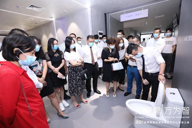 6月25日,箭牌家居全球体验研究中心迎来首届开放日。佛山市市场监督管理局党组成员、总工程师任伟青,威凯检测技术有限公司日电事业部总经理邢军,国家陶瓷及水暖卫浴产品质量监督检验中心主任区卓琨,中国建材市场协会卫浴分会、佛山市卫浴洁具行业协会秘书长刘文贵,中国建筑流通协会执委副会长兼陶瓷卫浴经销商委员会主席李作奇,箭牌家居集团董事长、总经理谢岳荣,箭牌家居集团董事、副总经理谢炜,箭牌家居集团副总经理卢金辉,箭牌家居集团副总经理严邦平等领导嘉宾,以及新华网、央广网、广州日报等权威媒体莅临现场,共同走进箭牌家居全球体验研究中心,开启全新的用户体验之旅。