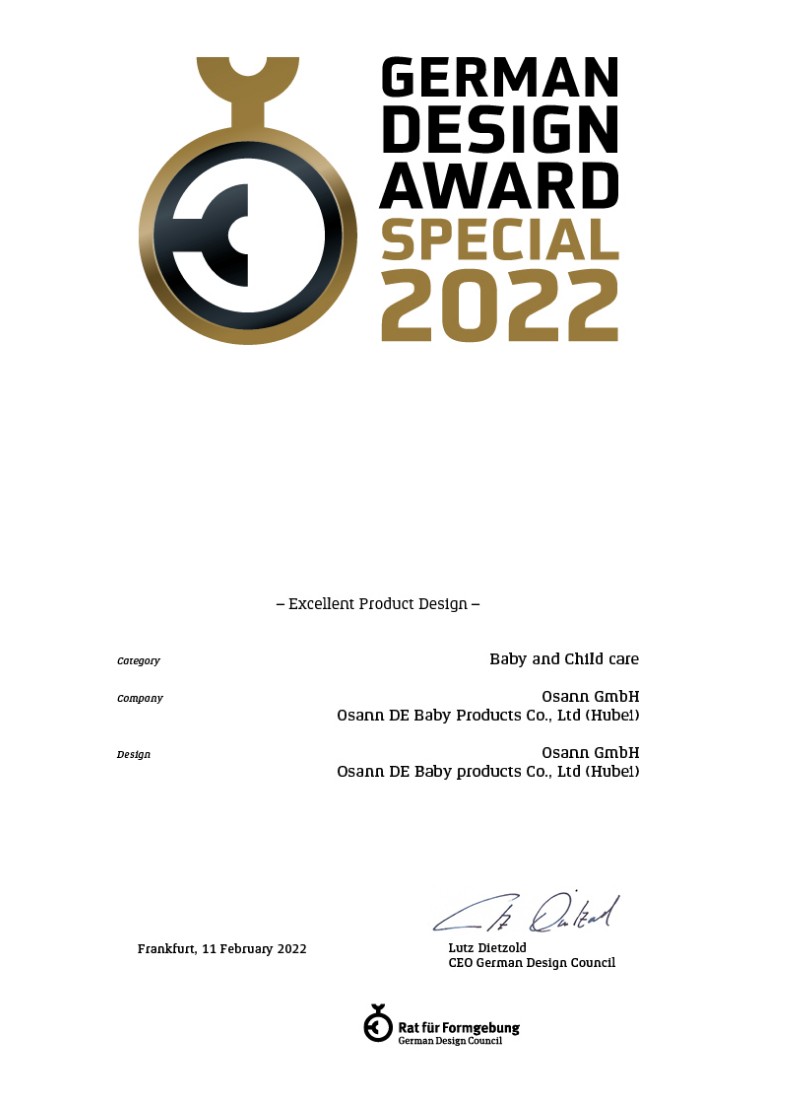 图说:德国Osann欧颂ACE星际号荣获了代表德国设计领域,影响力的 German Design Award—— 德国设计大奖。
