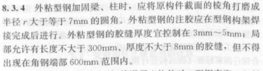根据《混凝土结构加固设计规范》GB 50367-2013,第8.3.4条规定:外粘型钢的胶缝厚度宜控制在3~5mm;局部允许有长度不大于300mm、厚度不大于8mm的胶缝,但不得出现在角钢端部600mm范围内。