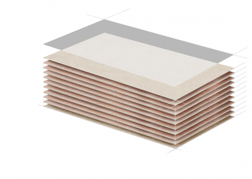 此外,产品上下表层铺装同等厚度同等质量细料,提升表面平整度的同时,经高温热压后更紧制,表面胶合粘连包裹板材内芯,带来更强稳定性(后续饰能板饰面系列还将继续升级更多健康基板,敬请期待)。
