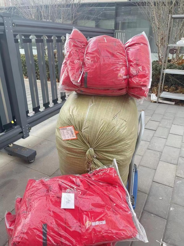 图一:恒昌志愿者们将崭新的棉服打包好后寄往内蒙古四子王旗