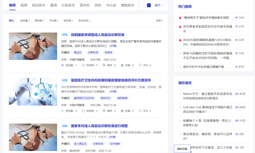 在热门推荐一栏,我们可以了解医疗与公共卫生领域的头版头条新闻;在前沿医学版块,汇集了国内外最前沿的医学进展和临床资讯;在病例栏目,我们可以学习到各科室经典与罕见病案例,培养临床诊疗思维;通过智能检索和分类,我们可以精准筛选出需要的资讯,获取信息目的更明确、过程更高效、结果更精准。