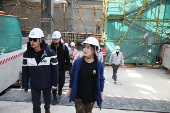 剧中“赵显坤”的扮演者甘泉,“夏明”的扮演者孙圣凯,“徐知平”的扮演者张珑腾等人在工程负责人的带领下,走马道来到地下工地的施工现场勘察施工情况。马道路窄,地下情况复杂,交叉作业量大,回到地面,男演员们长舒一口气,数十米高的脚手架上,工人们还正专心细致地进行高空作业,他们不禁感叹:“这是第一次来到建筑施工现场,如此近距离地接触到这些建筑行业的一线工作人员,看到工人们在钢筋混凝土之下身着工服,头戴安全帽,真实为这座城市的建筑辛勤劳动着,那一瞬间真的非常感动。