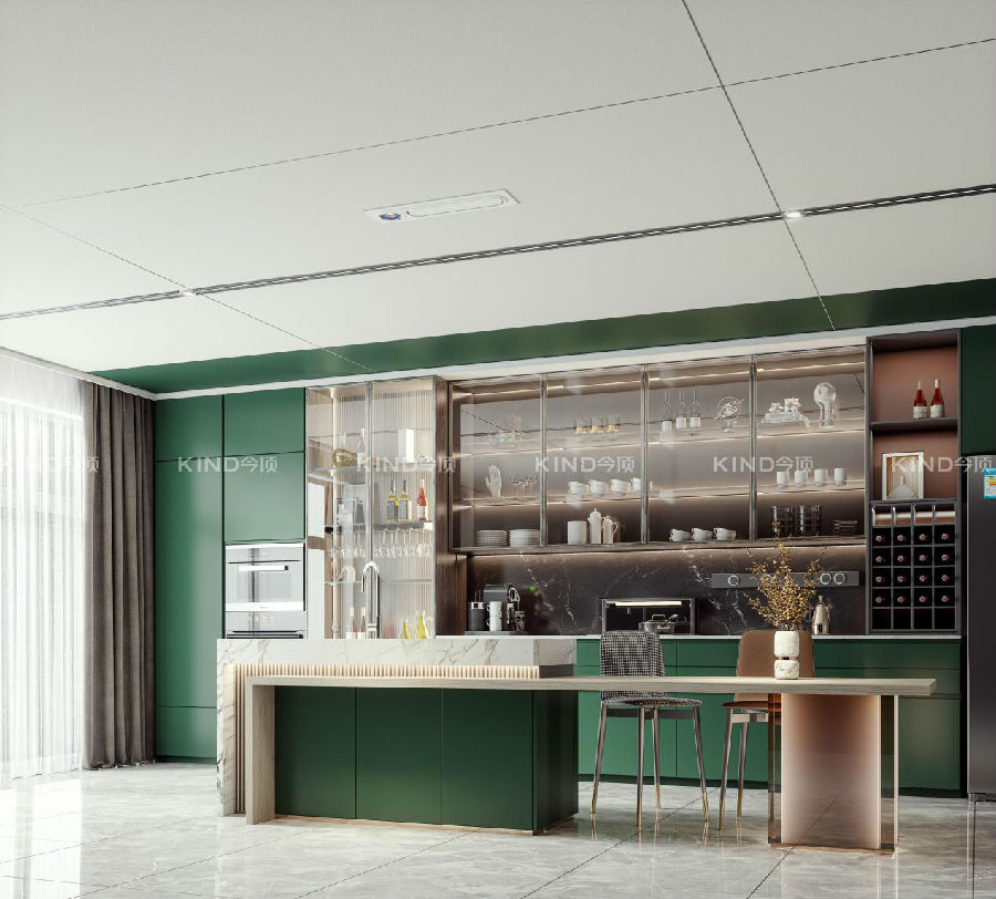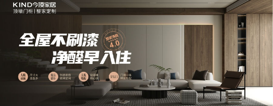 今顶“顶墙门柜整家净醛4.0”是指将顶、墙、门、柜四大类别组合起来,进行一体化设计、一体化加工、一体化施工,形成“顶墙门柜”一体化的装修体系。同时,使用绿色环保材料、装配式装修,两室一厅三天就可以完成施工,而且装修时不需要打胶、刷漆,从源头上杜绝甲醛释放源,减少全屋甲醛含量,减少通风时间,让用户早日入住,是真正的快装。