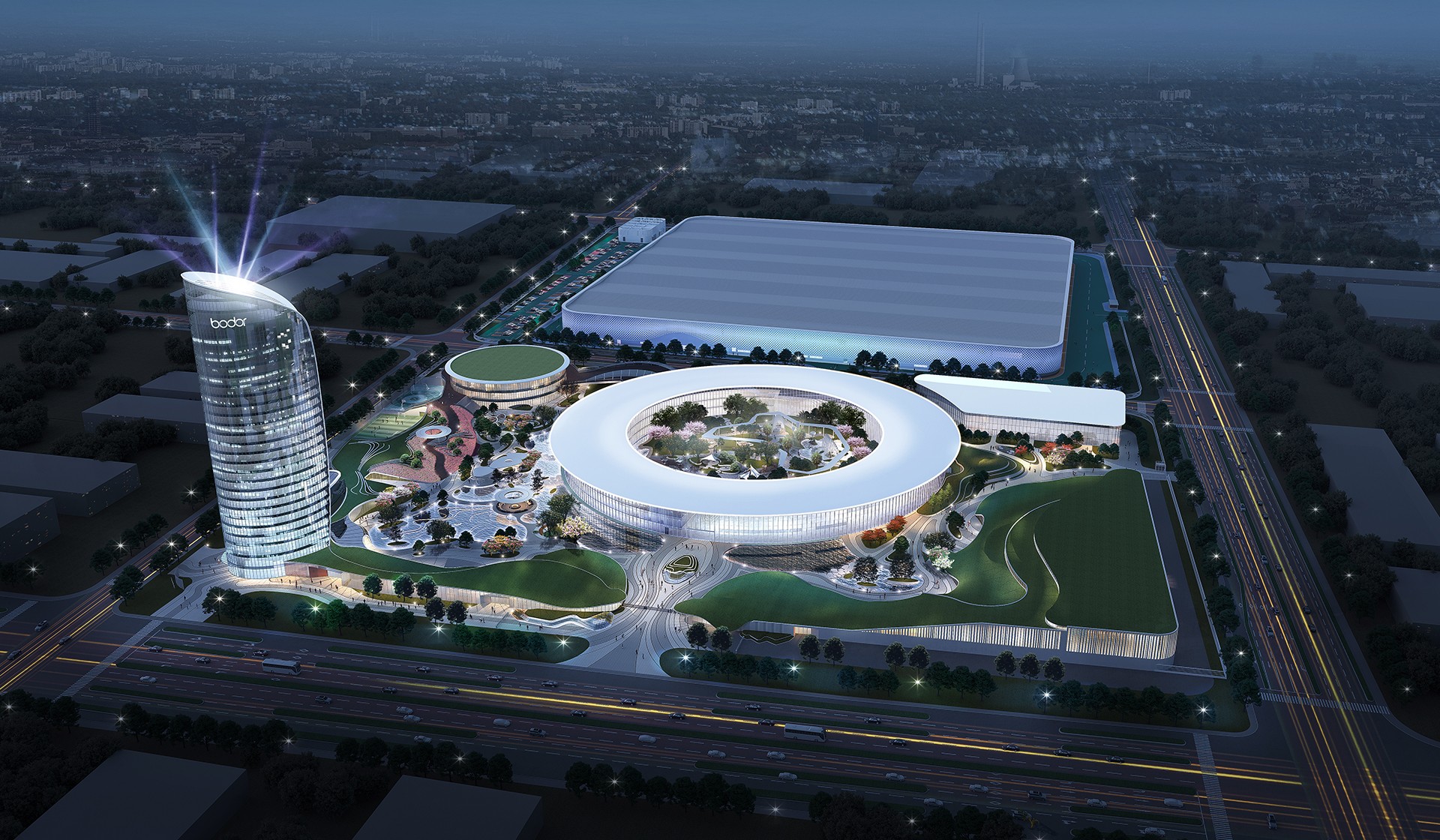 Dream Park以邦德logo字母“b”“o”为创意来源,引人注目的综合楼仿佛停靠在地球的一艘环形外星飞船,又形似中国古老的土楼建筑,将科技与中国文化链接在一起,为一群怀抱着改变世界梦想的邦德人提供一座仰望天空的居所。