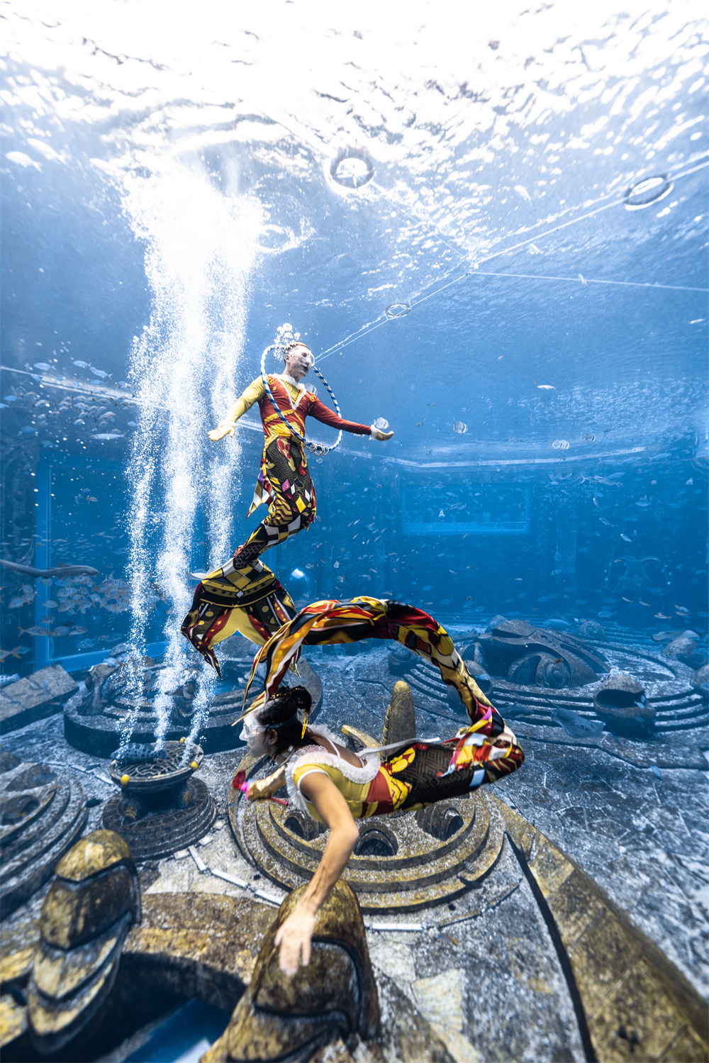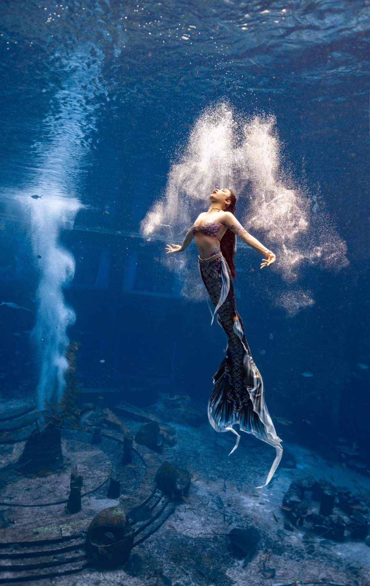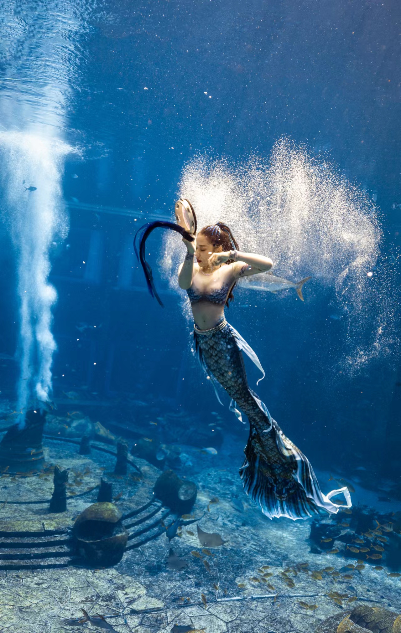 在此赛事前,三亚·亚特兰蒂斯已于2021年成功举办了首届中国美人鱼表演赛及2022年中国美人鱼公开赛(三亚站)。此外,2021年4月,110名美人鱼表演者同时在大使环礁湖完成了大规模水下人鱼秀,取得“,规模的水下人鱼秀”吉尼斯世界纪录。三年来,三亚·亚特兰蒂斯与美人鱼潜水运动结下了不解之缘,大使环礁湖这一专业场地更是受到了众多潜水爱好者的青睐。在这一背景下,三亚·亚特兰蒂斯推出了多项适合各年龄段游客的潜水运动产品。目前,三亚·亚特兰蒂斯潜水俱乐部已经提供一站式潜水体验及教学服务,开设水肺潜水、自由潜及美人鱼潜水等十余门潜水课程;度假区内还拥有多处潜点及教学泳池,其中,海豚小岛、鲨鱼池及大使环礁湖等场地,为不同级别的潜水者们提供了难易不同的潜水环境。
