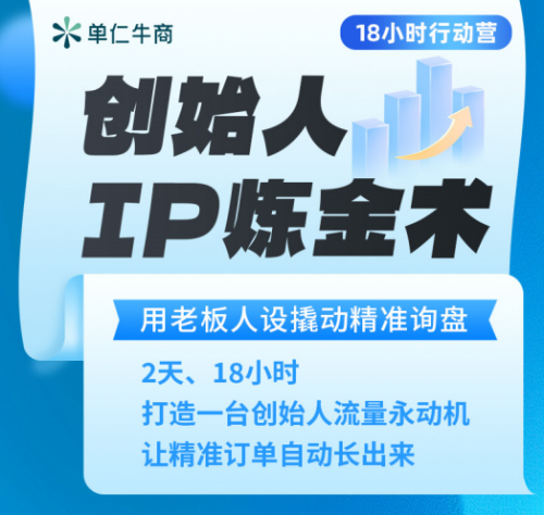 单仁牛商推出的《创始人IP炼金术——用老板人设撬动精准询盘》18小时行动营 ,旨在帮助企业创始人在激烈的市场竞争中脱颖而出,打造个人品牌,撬动精准流量与订单转化。