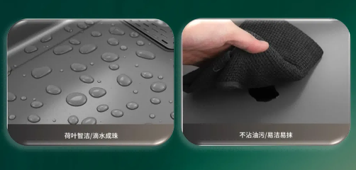 针对这一问题,摩恩铎致不锈钢水槽创新采用纳米疏油黑科技,具备荷叶智洁特性,油滴自动滑落,应对荤腥油腻食材残留的油污,也能做到一冲即净、易洁易抹,家庭日常清洁水槽变得更加简单方便,不必再为厚厚的油污发愁。同时耐磨防刮擦的高品质表层,可以有效避免餐具刮蹭留下痕迹,洗洗涮涮更轻松。