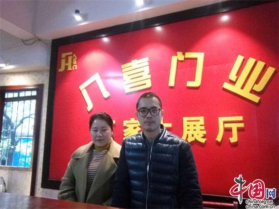 八喜门业集团公司法人代表骆梁潇(右)与销售部总经理黄燕方在厂家大展厅