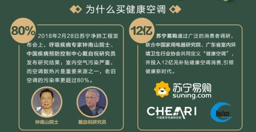 室内空气污染如此严重,如何防治呢?记者获悉,早在今年2月底,苏宁牵头全行业发起净肺工程,投入12亿用于健康空调的让价补贴,并发放8亿用于老旧空调换新的专项补贴。