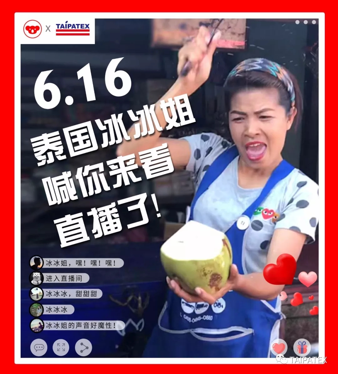 砍椰子的biang biang biang和魔性的“甜甜甜、冰冰冰、要要要”迅速走红抖音,泰语、中文、英文随时转换,有趣喜感,成了百万人点赞的泰国网红“冰冰姐”。
