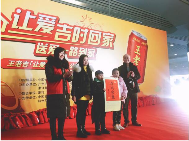 据悉,王老吉“让爱吉时回家”公益活动自2013年正式发起,至今已连续举办了六季。本季“让爱吉时回家”公益活动,王老吉启动了“北京西-郑州东”、“广州-武昌”“杭州东-贵阳北”3条爱心列车,一条普快两条高铁,覆盖北中南,范围更广、速度更快。不仅如此,王老吉还针对大学生群体开展了“你的车票我来报”公益活动,为有需要的大学生报销回家路费,针对因公无法回家的务工人员开展“来穗团圆”公益活动,帮助更多的务工人员春节团圆。