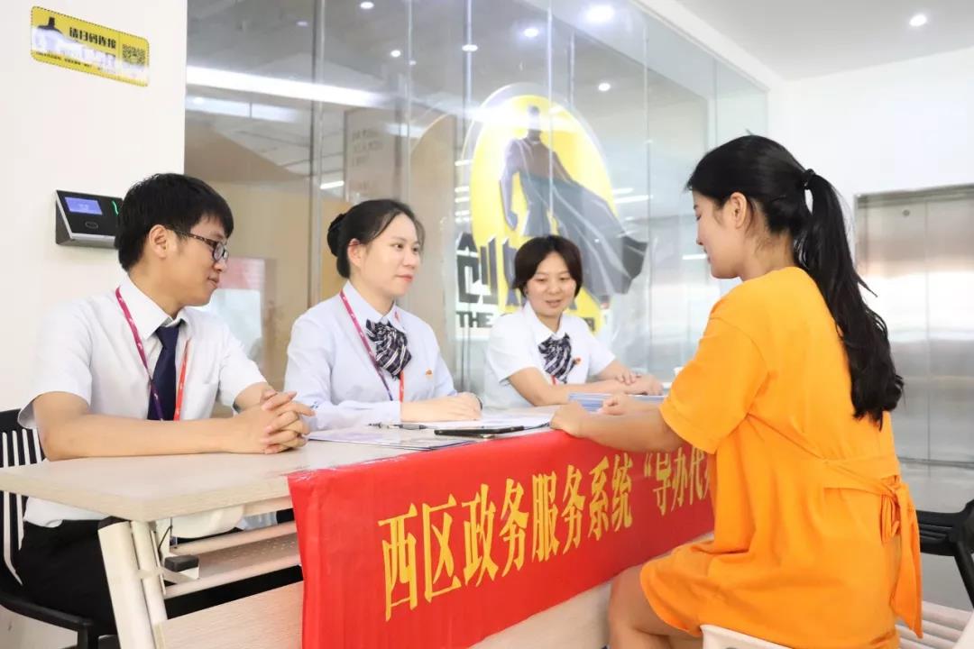 在园区二楼的创始人众创空间,西区政务服务管理办公室设立了服务站点,通过与群众“面对面”咨询、发放宣传手册等方式,向群众介绍并解决涵盖工商、食品药品监管、卫生计生、流动人口管理、社会事务、文体教育、党员组织关系、技术职称、环保、交通、安全生产监管、住房和城乡建设、发改、经信、工会、统侨、宣传文体、农业水利、公安等近20个方面的相关问题。