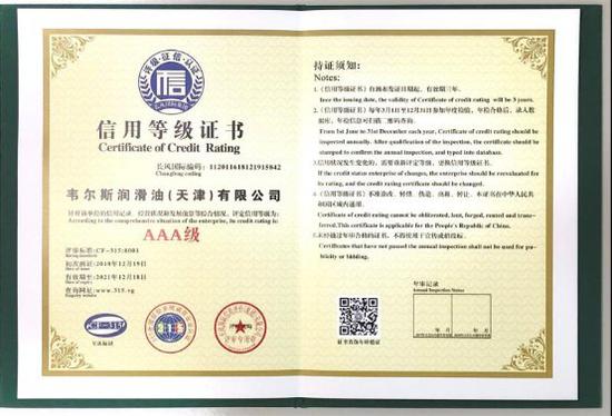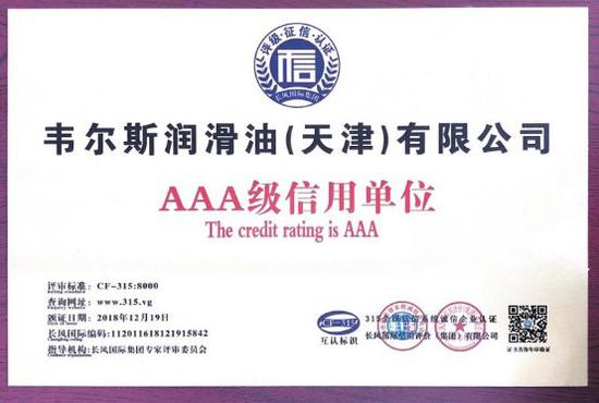 2018年对于韦尔斯来说,是不平凡的一年。这一年,韦尔斯润滑油4.0智慧工厂正式投产运营。这套系统以智能化为核心,将基础油储量信息、润滑油的调和、生产、灌装和封装工作集于一身,合理的调配并组织生产,从而实现了生产高度自动化、智能化。2018年年末,韦尔斯还被授予了“AAA级信用单位”,这也表明韦尔斯润滑油的品牌形象以及生产质量获得认可,具备了走出,的基础,韦尔斯品牌的社会口碑、产品质量和公司经营的守信程度都严格符合相关标准。