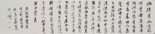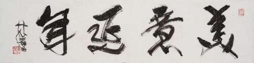 林墉是岭南画派大家,他的画霸悍,坚实,俏丽媚艳,展现出不俗的追求和多变的才华。他的书法作品与他的绘画作品相辅相成,延续了绘画中弧形长线的表现力,有意识地在流动的节奏中加入了方块楔形,谋求视觉上的冲突,突出结构张力。字里的明暗交接处,时而似古藤老树般牵连哲思,时而变幻出山水画般流露出霸悍的姿丽,下笔轻巧迅速,气势涌动。