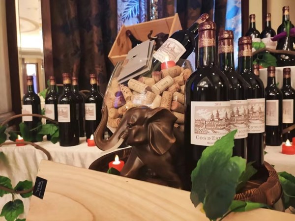 当晚的品鉴会,在香格里拉大酒店举行。爱士图尔酒庄在创建时,融合了很多东方元素,爱士图尔城堡集合了中国古钟楼、印度大象、苏丹木雕门、钟乳石笋等。18世纪时期,当时的庄主将印度大象的石雕摆满酒窖,并逐渐成为爱士图尔酒庄的标志。为了让雷比尔先生有宾至如归的感觉,快悦在品鉴会现场特意摆放了大象装饰。