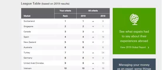 据悉,每年汇丰银行都会对全球100多个国家和地区进行综合以及单项排名,而《2019全球移居报告》这项年度调查,收集了163个国家和地区的18059名外籍员工的数据,可以说这是一份权威的“全球最佳移民国家和地区”榜单。