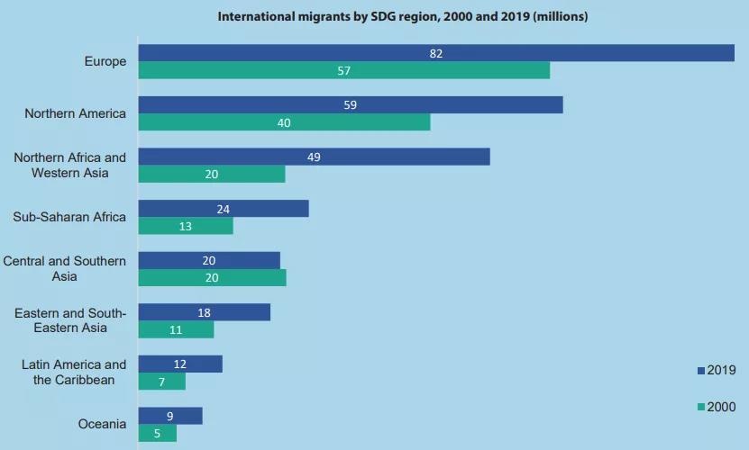 从以上移民数量来看,移民在世界各个地区都呈现增长趋势。