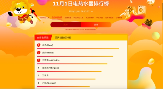 此外11月1日还有很多爆款厨卫电器五折抢,如洗碗机,电热水器、蒸烤箱、电热水器等。