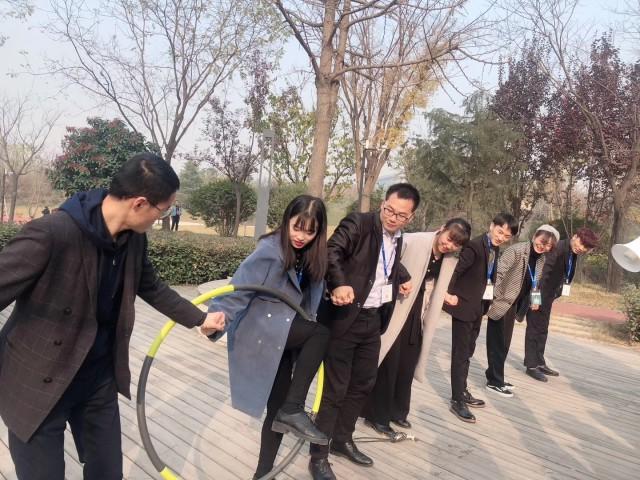 “一圈到底”,在游戏负责人王老师的讲解下,各小组成员快速理解游戏规则,每个小组手拉手站成一排,要求呼啦圈在不动位置,不沟通的情况下从第一人传到,一人手上,并且呼啦圈不能落地,用时最短者获胜,最终我们的颜值爆表组以58秒的优异表现获得一圈到底的获胜小组,其他小组也为我们的,送去了祝贺的掌声,失败者接受王老师无情的惩罚。其实生活也是如此,做得好我们能得到它的回报,做不好我们要去接受它的惩罚,通过游戏我们能看出来,我们的新员工是一批有想法,敢行动的,敢担当的优秀同事。