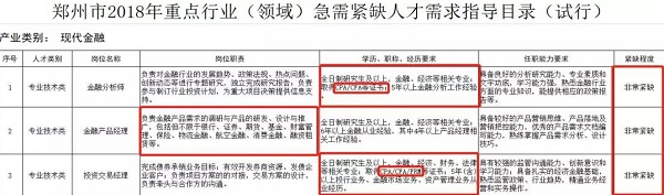 2017年以来我国多省市发布人才需求规划:上海、北京、广州、武汉、南京、深圳、成都等中国主流一二线城市明确了CFA、FRM人才需求,并公开了诱人的福利政策(优先落户、子女就学、配偶就业、购房补贴、住房补贴等等)。而郑州在2018年也加入了,人才引进政策: