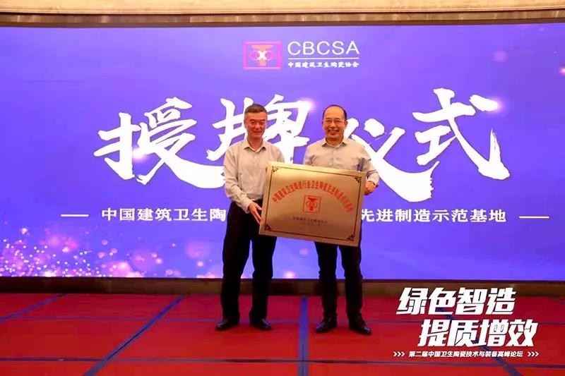 论坛当晚,举行了中国建筑卫生陶瓷行业卫生陶瓷先进制造示范基地的授牌仪式。