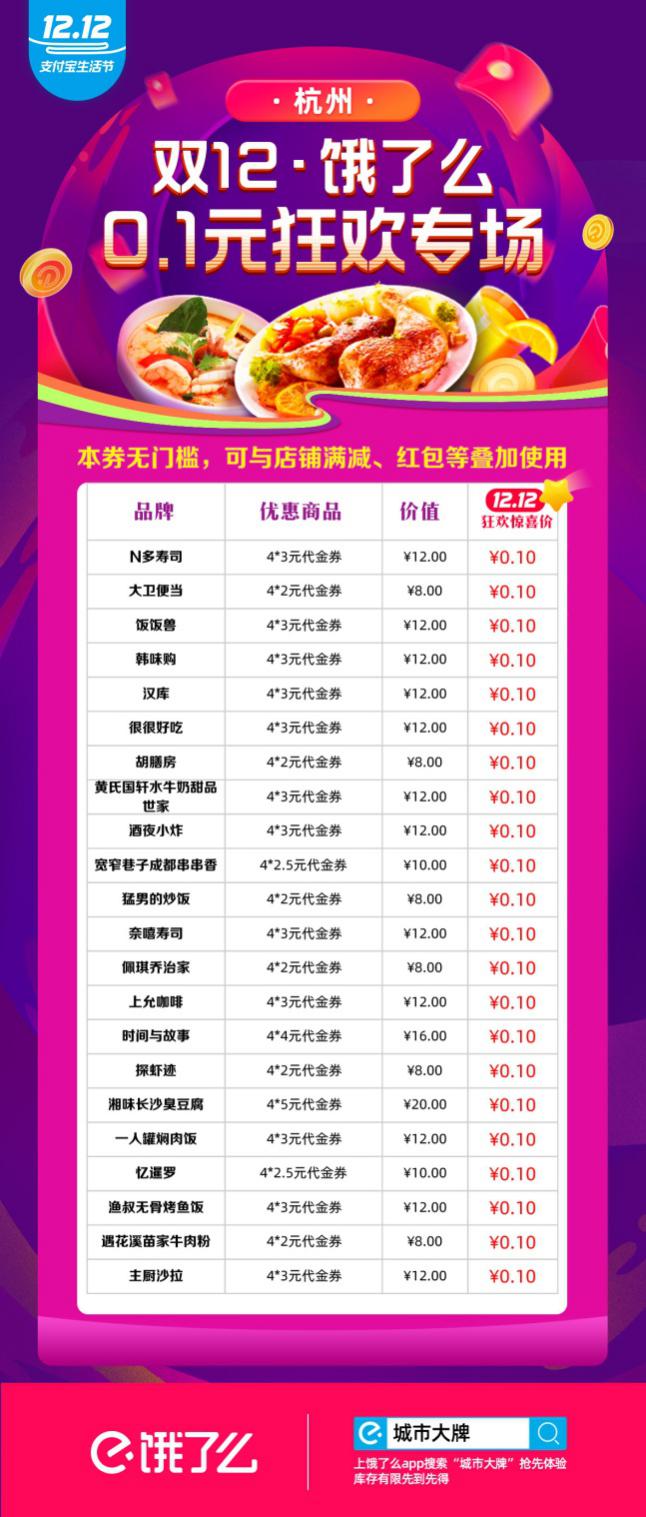 如此种种,不胜枚举,更让人欣喜的是,口碑饿了么的双12代金券,可以与店铺满减、红包等叠加使用,而且无门槛!