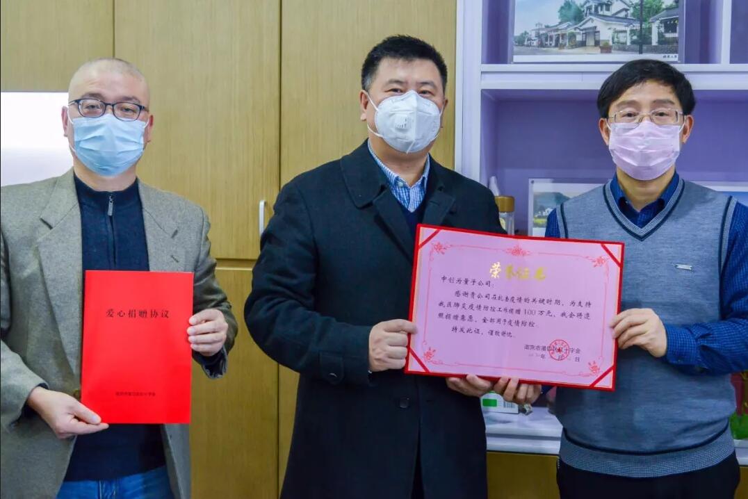 2020年2月2日,经沈方红董事长提议,公司研究决定先期捐赠100万元现金支持疫情防控,捐赠由南京浦口区政府相关部门接收,并定向用于抗疫一线,驰援疫区。中创为人向奋战在一线的白衣天使和所有奋斗者致敬。