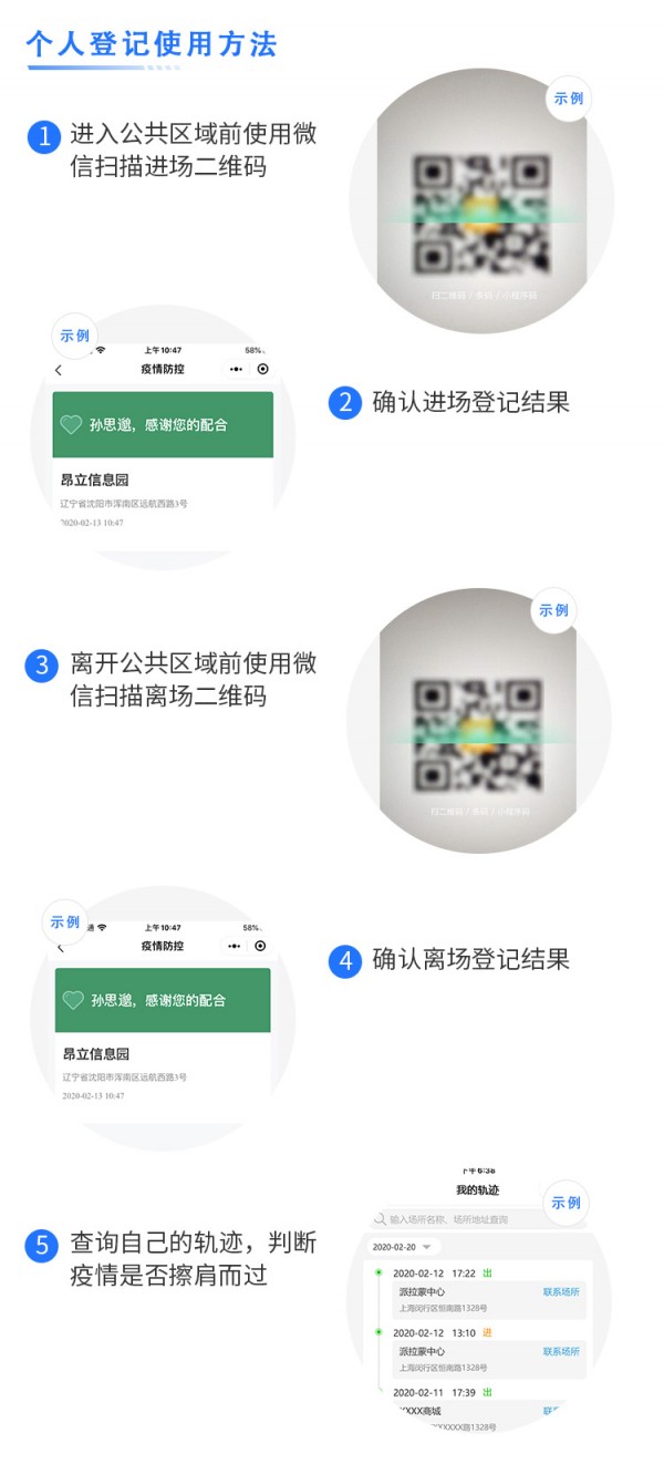 1、进入公共区域前使用微信扫描进场二维码,确认进场登记结果;