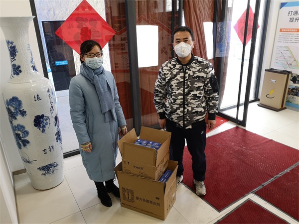 2月7日,e城e家工会主席赵玉龙代表e城e家为望京东湖街道办送上了一次性乳胶手套和一次性医用口罩等防疫物资。