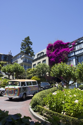 | 九曲花街是世界上最弯曲的街道,有八道弯,斜坡呈40度,车辆只能往下单行。街道上花草繁茂,花团锦簇,常年吸引来自各地的游客。(薛钰洁 摄) |