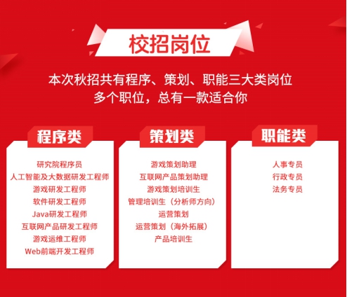在人才培训机制上,多益网络针对职场新人量身打造了“多益大学”,有专业的导师进行一对一指导,通过专业技能培训、素质拓展,交流分享会等为期三个月脱产培训让新人快速成长,实现自我提升;在福利待遇方面,除开出极具竞争力的薪酬外,多益为员工提供的健康三餐、温馨宿舍、班车接送、旅游经费、父母体检报销等多种福利,免除了工作外的其他烦恼,为员工专注于游戏事业提供支撑。