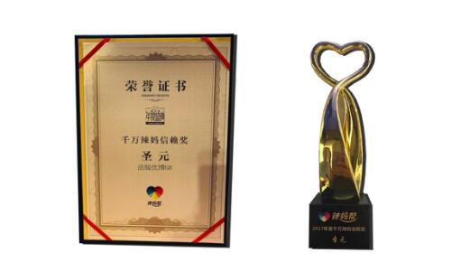 2017年12月18日,国内知名垂直母婴社群辣妈帮“2017年度盛典暨2018战略发布会”在广州盛大举行。众多母婴行业,品牌、专家领导、权威媒体以及来自全国各地的辣妈达人代表齐聚一堂。在年度品牌颁奖环节,知名乳企圣元荣获2017年度“千万辣妈信赖奖”,同时,旗下明星产品——法版优博58产品也摘得同名奖项,赢得了现场嘉宾的热烈祝贺。