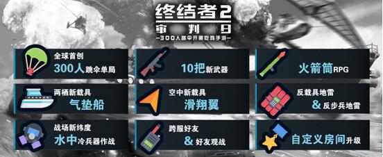 百万人同服!单局,300人开黑!3D高清画质大世界,多元地形丰富场景,64平方公里超震撼战场,海陆空三维颠覆性对战体验;伏地硬刚听声分辨位,紧张刺激血脉喷张!载具狂飙激情碰撞,上演精彩时速之战!百变装备自由搭配,尽显独门策略战术!《终结者2:审判日》将带给你,的快节奏枪战竞技体验!