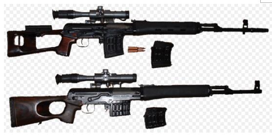 SVD枪由前苏联设计师德拉贡诺夫借鉴AK步枪的可靠设计而研发的一种狙击步枪,有意思的是,德拉贡诺夫本身也是一个优秀的射击选手,曾在射击比赛中取得过不错的成绩。SVD可以发射两种7.62X54R弹药,分别为普通弹和7N1狙击弹。早期的SVD狙击步枪为发射普通弹设计,枪管缠距为320毫米,后来为了适应发射更精准的7N1狙击弹,缠距被缩短到240毫米,但却使SVD狙击步枪在发射普通弹时精度变差。