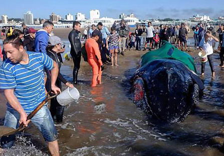 目前,阿根廷海防部门与环保主义者以及当地人员都加入了此项救援工作中,同时参与的人员还包括观光的游客,大家坚持一起努力帮助这头无助的庞大动物重返大海。(实习编译:任倩倩 审稿:朱盈库)